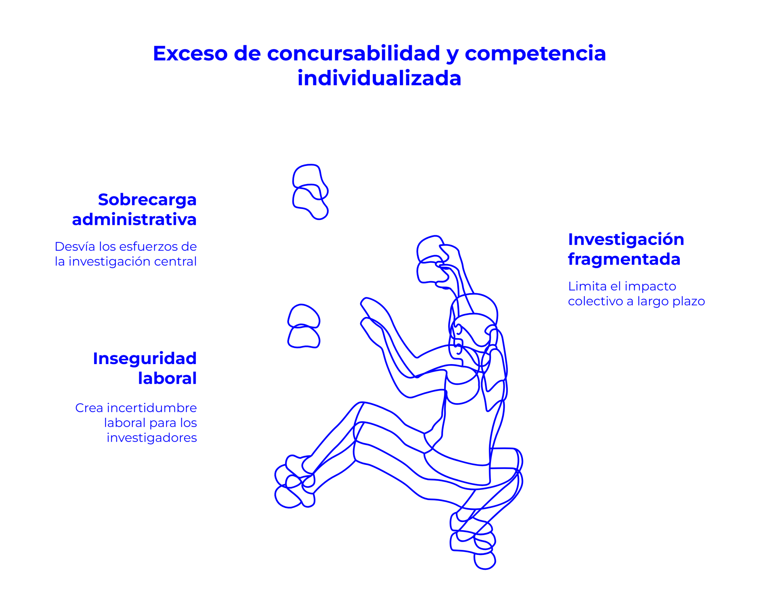 Revisar y reformar el sistema de concursabilidad es considerado necesario, debido a la inestabilidad y fragmentación de la investigación que produce, en especial para jóvenes y quienes se desempeñan en el ámbito CTCI en regiones.