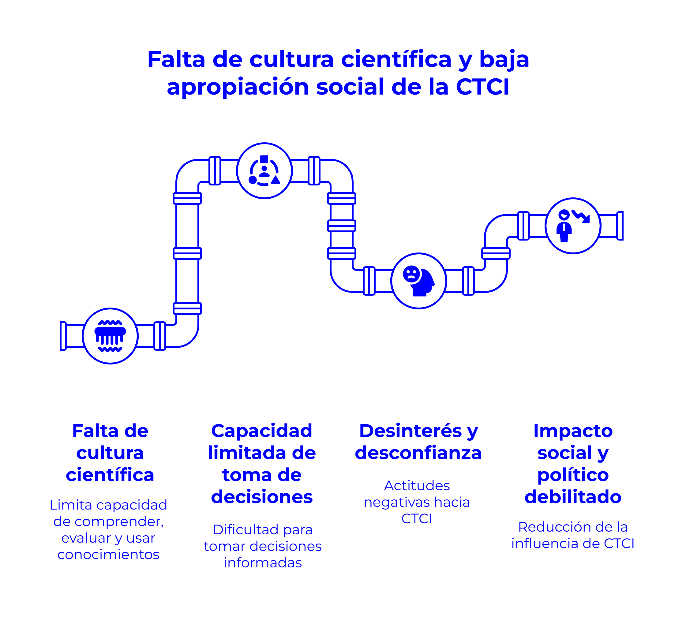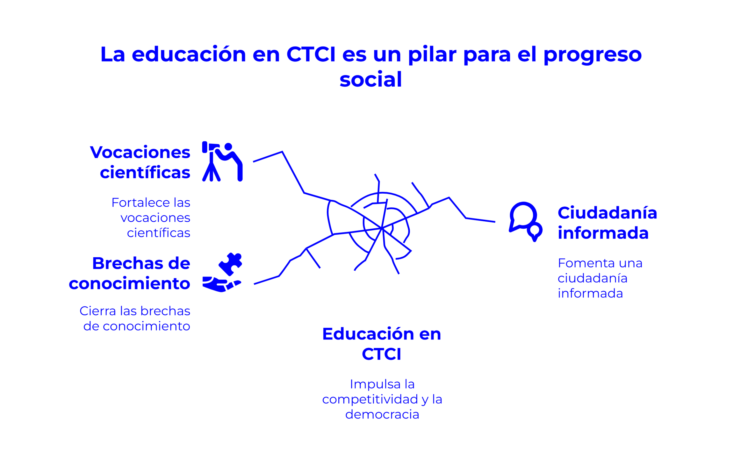 Invertir en educación permite cerrar brechas de conocimiento, fortalecer vocaciones científicas y fomentar una ciudadanía informada. Una prioridad es la formación temprana en ciencia, tecnología, conocimiento e innovación propendiendo a la formación de una cultura científica desde la educación básica y considerando todos los niveles educativos, para preparar a las nuevas generaciones con creatividad frente a los desafíos futuros, considerando que sea accesible y equitativa en todo el país para así potenciar el desarrollo local.