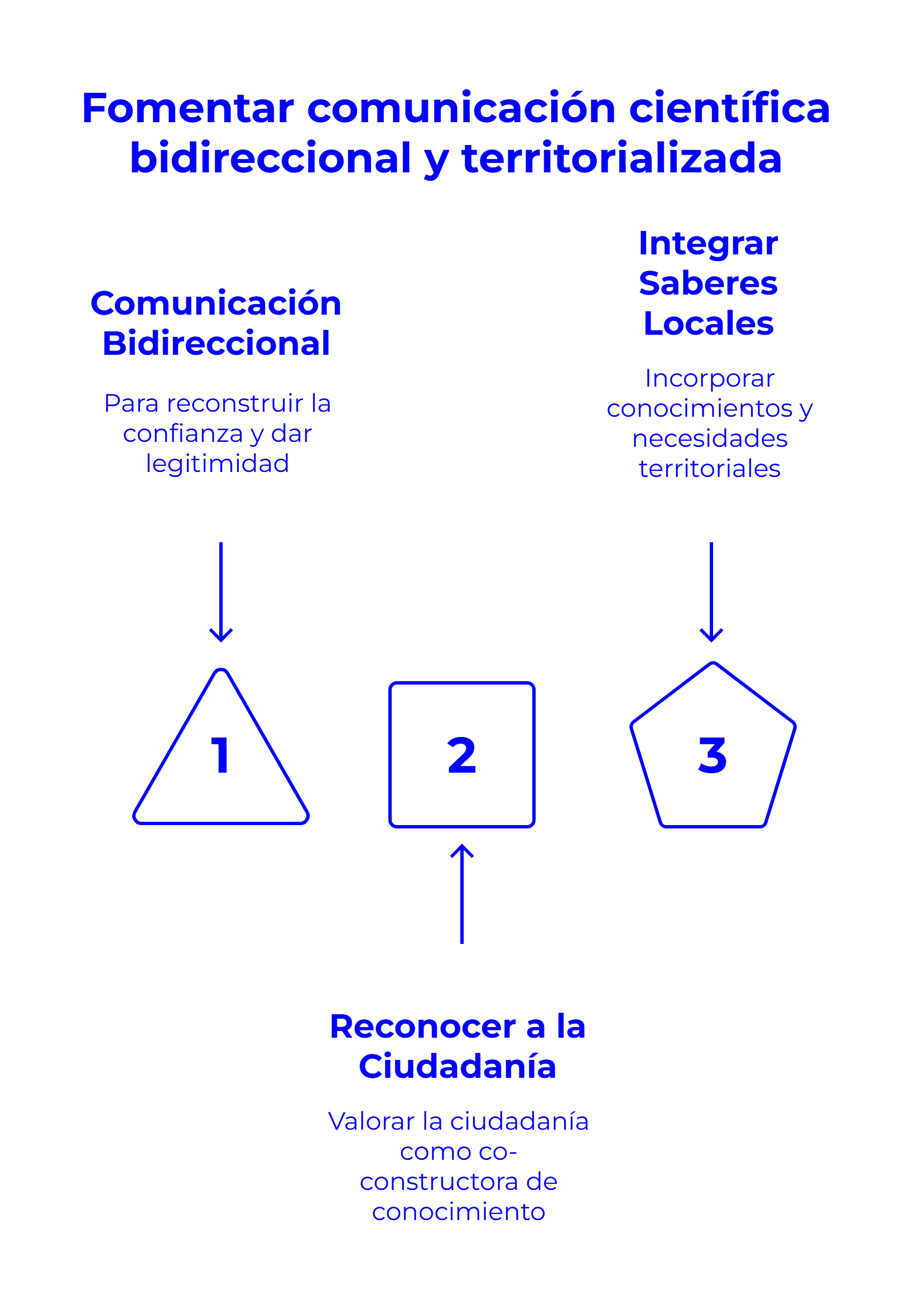 Considerar a los saberes locales, las experiencias comunitarias y la ciencia ciudadana en el ecosistema CTCI, promoviendo una ciencia más inclusiva y alineada con los desafíos reales del país