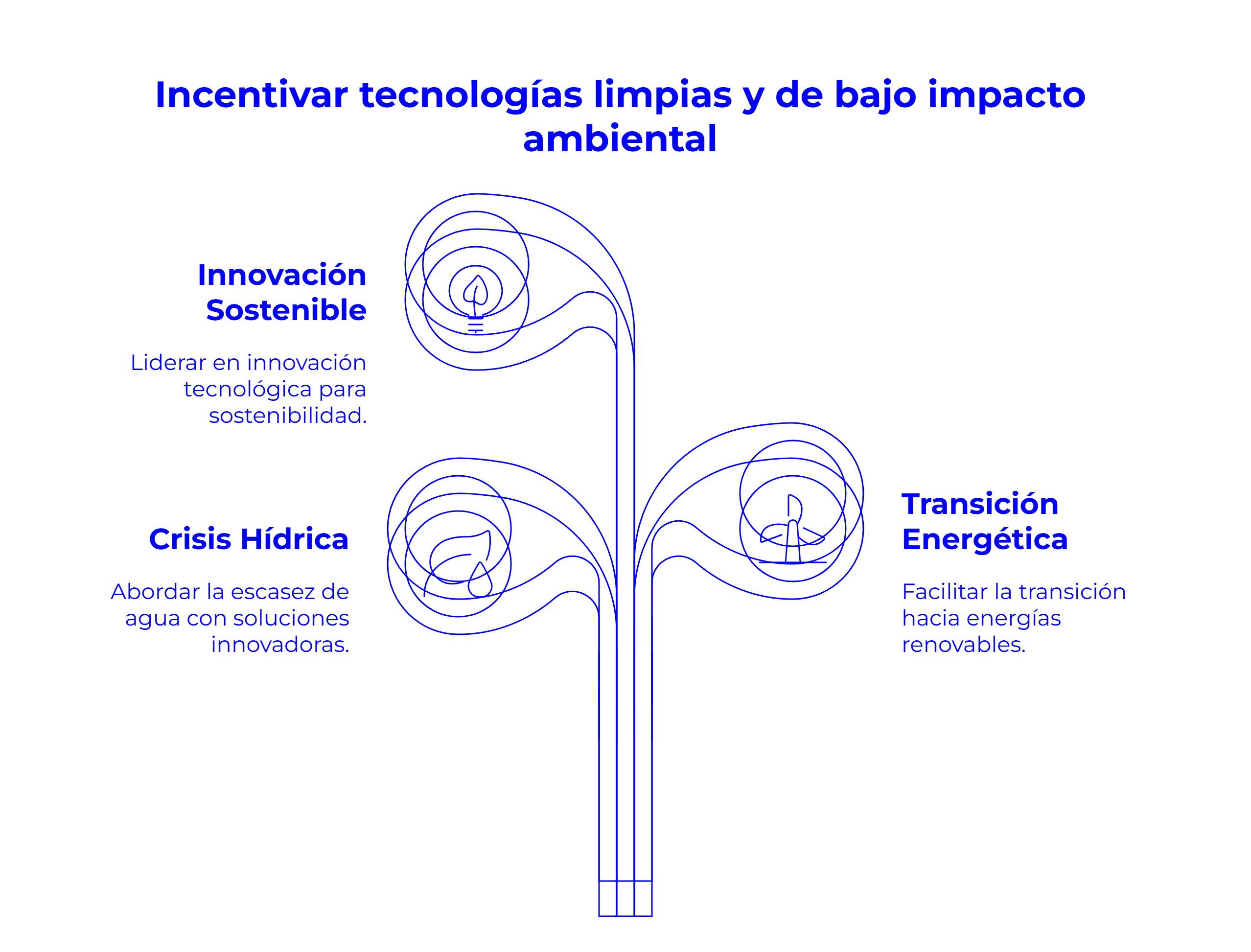 La promoción de tecnologías limpias y de bajo impacto ambiental es vista como una necesidad urgente para enfrentar desafíos como la crisis hídrica y la transición energética. Se sugiere que Chile podría posicionarse como un líder en innovación sostenible mediante el desarrollo de soluciones tecnológicas orientadas a la sostenibilidad.