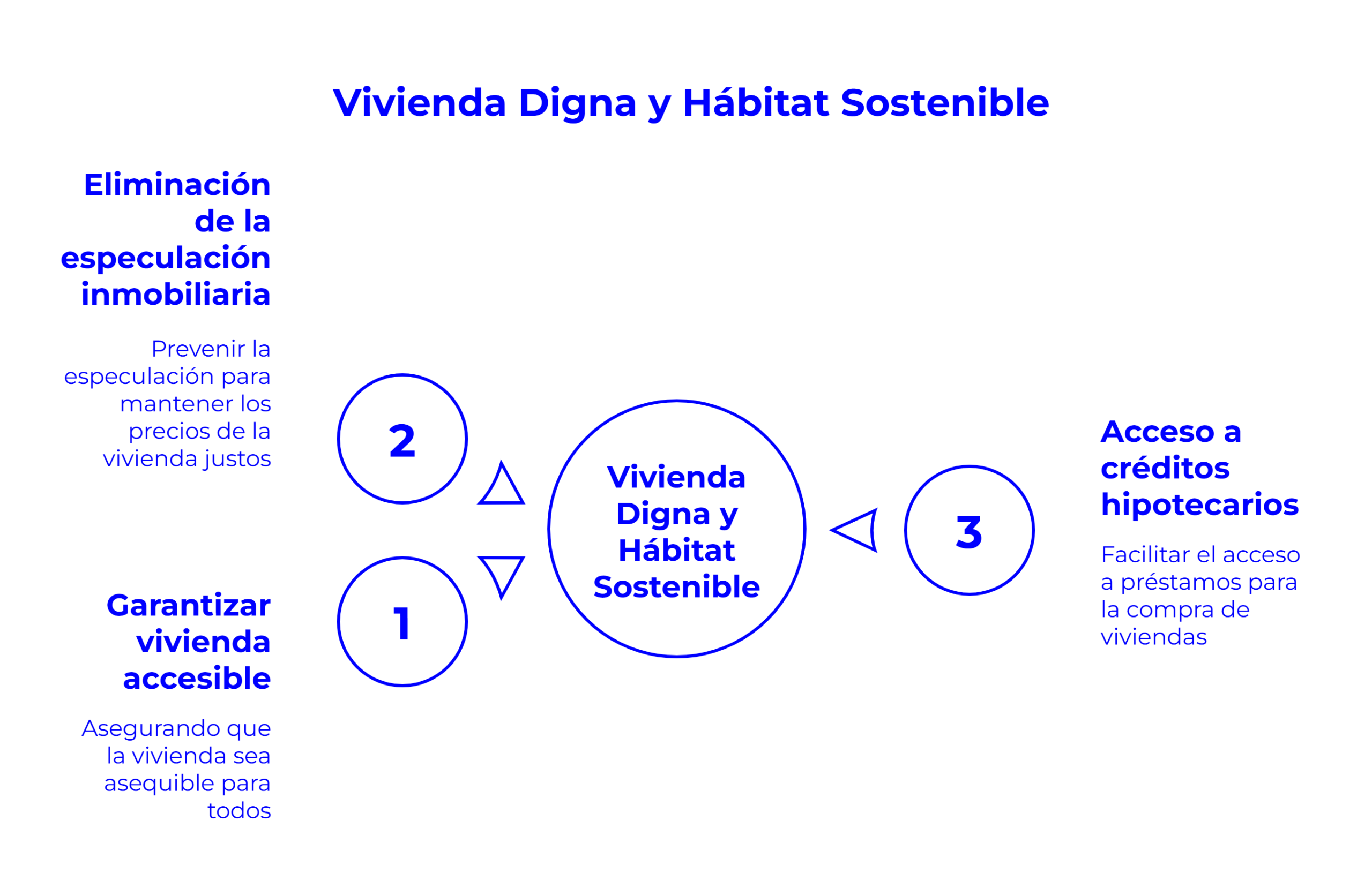 La necesidad de garantizar viviendas dignas y accesibles es observada como un derecho fundamental que impacta directamente en la calidad de vida y la cohesión social. Se destaca la importancia de eliminar la especulación inmobiliaria y facilitar el acceso a créditos hipotecarios.